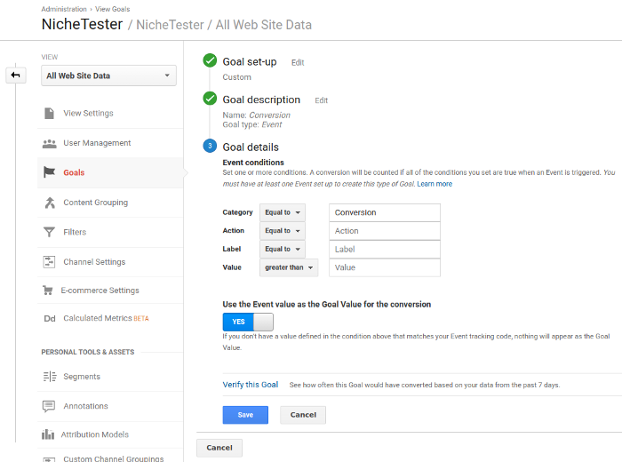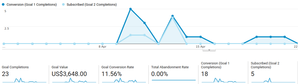 The key to this whole process is measuring whether the people who arrive on your site actually make it through to buying or trying the product, and for that you’re going to need some kind of analytics suite. I use Google Analytics because it makes it really easy to track conversion rates against individual ads, but if you’re using a platform with built-in analytics or you’re more familiar with something else that’ll work too.