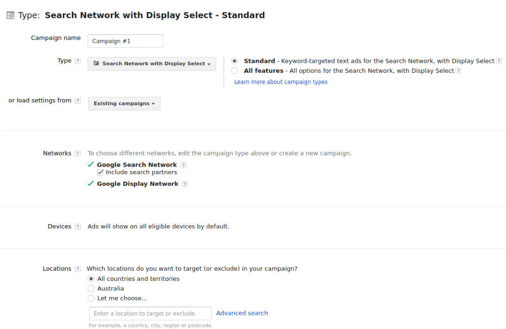 Sign up for a Google Ads account and make yourself a new Campaign. You can leave most things as default. Just be careful of “Locations”, as it defaults to your own country, and chances are you want to be running ads worldwide.